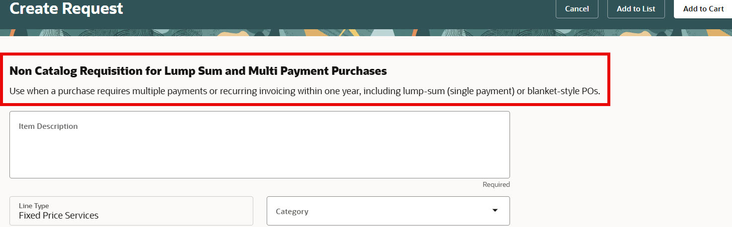 Non-Catalog Requisition for Lump Sum and Multi-Payment Purchases